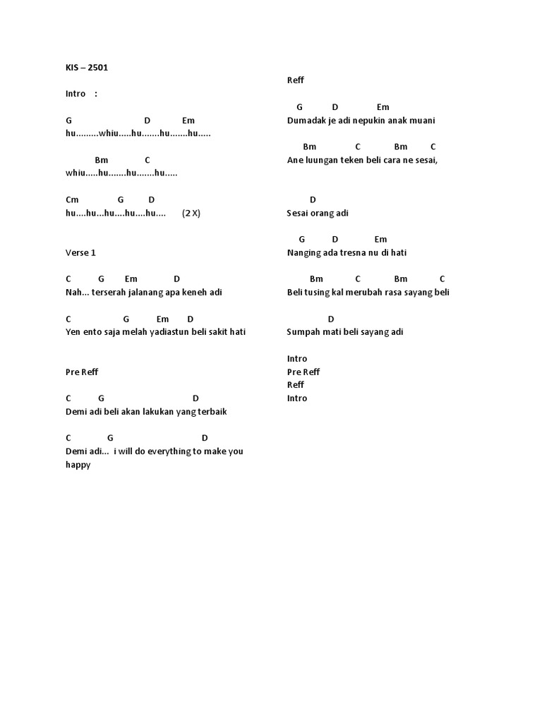 Chord Kunci Gitar. Nanoe biroe - Manusa panak manusa Chord and Lyric Lolot band - Buduh pedidi CHord and Lyric Lolot band - De bes ruet Chord and Lyric Lolot band - Dharma sentana Chord and Lyric Lolot band - Enggung Chord and Lyric Lolot band - Jeleme palsu Chord and Lyric Lolot band - Kehalangin kasta Chord and Lyric. Berikut lirik dan chord lagu Gumi Tanpa Matan Ai dari Nanoe Biroe.