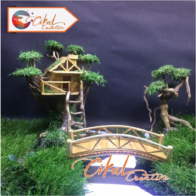 Jadi seolah-olah kita melihat replika alam nyata di sekitar kita. Misalnya di dalamnya terdapat replika jalan jembatan mobil rumah-rumahan atau patung yang berukuran kecil. Hiasan Aquarium Aquascape Jembatan Dekorasi Aquascape Tema Diorama.